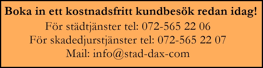 Städ da´X Värnamo med tillgänglighet i närområdet, kvalitet och rätt kompetens vill vi erbjuda våra företagskunder och privatkunder en behovsanpassade och och kostnads effektiva tjänster och produkter inom skadedjursbekämpning och i städbranschen.